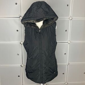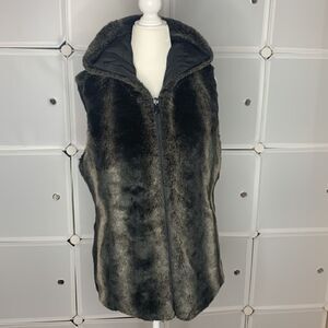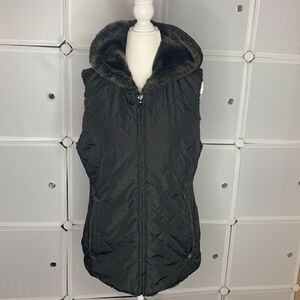 Kristen Blake Black & Faux Fur Reversible Hooded Vest Size Small