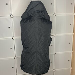 Kristen Blake Black & Faux Fur Reversible Hooded Quilted Vest Size Small. Hole in pocket lining otherwise in EUC. Pockets on both sides.