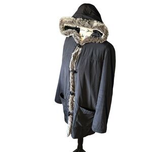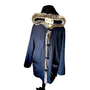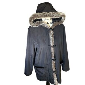 Kristen Blake Button Front Hooded Parka W/ Faux Fur Trim Sz Small