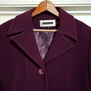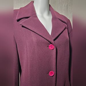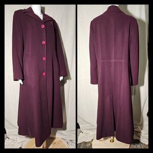 Absolutely stunning wool and cashmere blend coat! Beautiful timeless lines in a burgundy wine color.