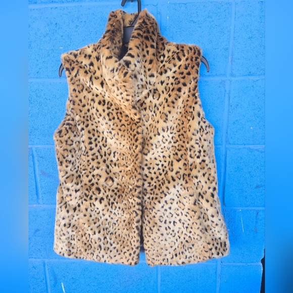 Kristen Blake Woman's Vest Medium Faux Fur Animal Print Full Zip Pocket