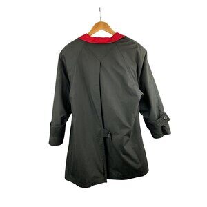 Kristen Blake Womens Black Trench Coat With Red Collar & Plaid Lining XS
