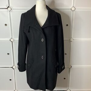 Kristen Blake Black Fine Australian Wool Blend Funnel Neck Pea Coat Size Small