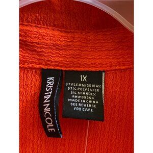 Kristin Nicole Womens 1X Orange Button-Up Collared Shirt With Roll-Tab Sleeves &