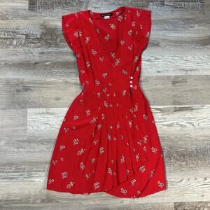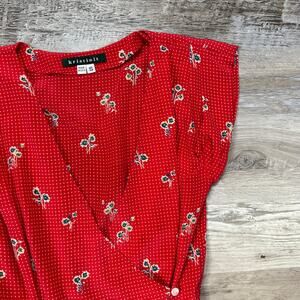 Kristinit Red Floral Button Front Midi Dress - Size Small