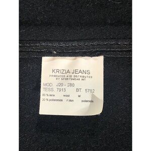 This vintage jacket by Krizia Jeans offers a timeless design with a focus on quality and durability. Crafted from a wool blend, it provides warmth and comfort, while the zip and button closure and multiple pockets add practicality. Its classic black color enhances versatility, making it a valuable addition to any wardrobe. Rare find. Gently worn and still in great condition!