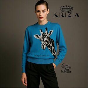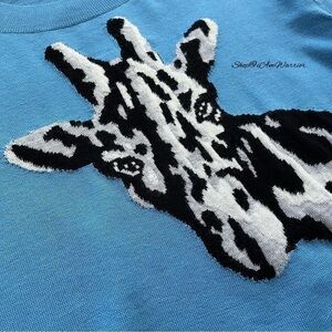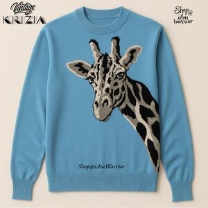 Krizia RARE 80s giraffe head crewneck cornflower blue sweater *shop@iamwarrior