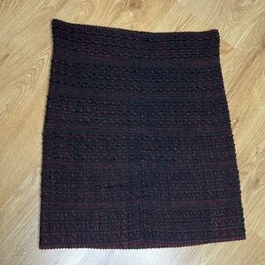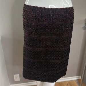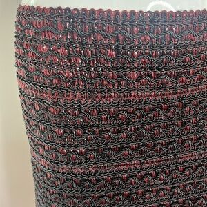 This is a beautiful Krizia Sz 6-8 Elastic Corde Dark Red Black Pull On Skirt Vintage Made in Italy. Can be worn as. Skirt or tube top. Full length 19”