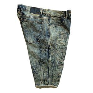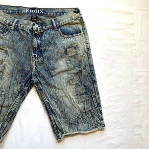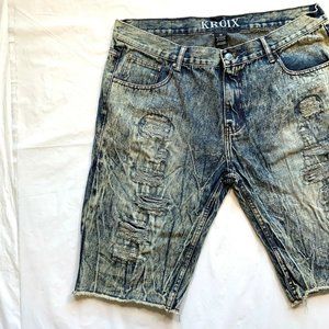Kroix Jean Denim Shorts Mens 38x13.5 Distressed Acid Wash Relaxed Faded Raw Hem