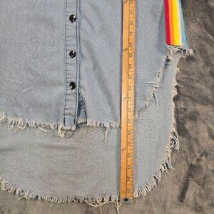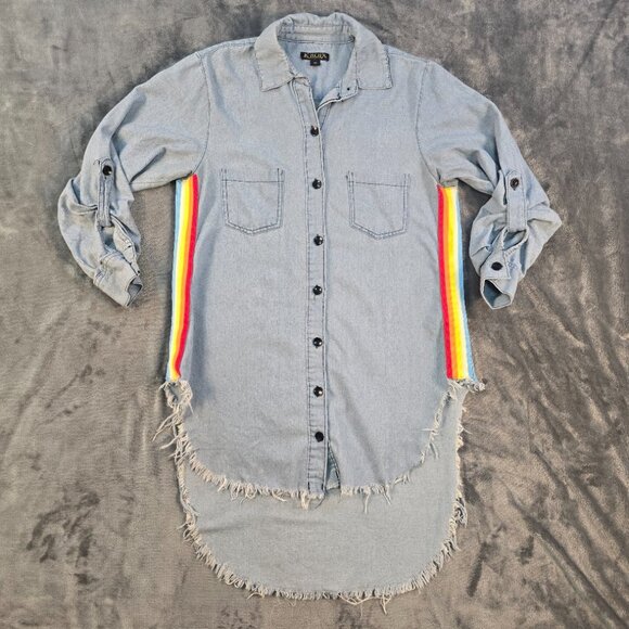 Kroix Shirt Dress Womens M Blue Denim Button Down Rainbow Side Distressed Grunge Festival