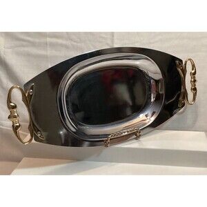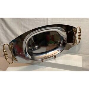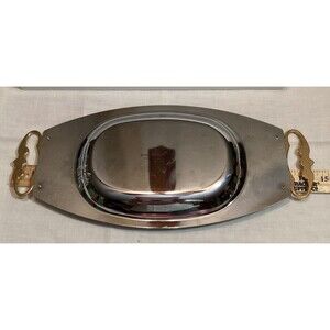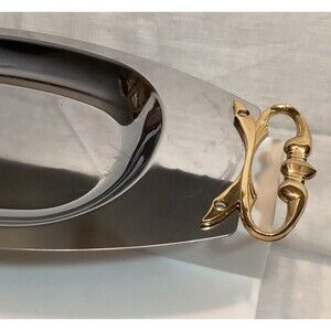 Kromex MCM Silver Serving Bar Tray Dish Platter Gold Metal Handles Mid Century