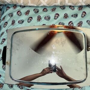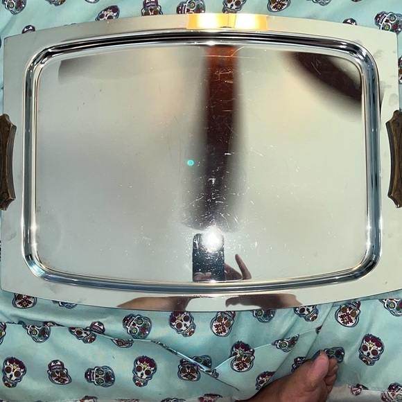 Kromex Rectangular Chrome Serving Tray with Teak Wood Handles . MCM Vintage. USA