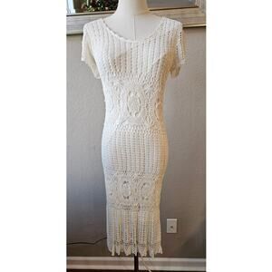 Kroshetta by Papillon Crochet Knit Dress Size M White Lace Open Weave Boho