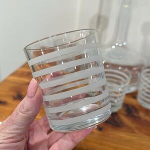 Krosno Poland MCM Crystal Decanter w/ 5 Matching Striped Low Ball Glasses