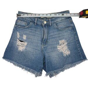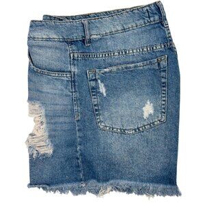 Krísy Bermuda Shorts Womens 36 Blue Distressed Denim High Rise Frayed Hem Resort