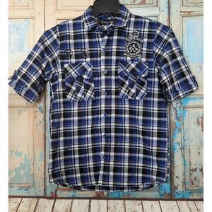 Krusader Premium Mens Large Blue White Plaid The Brave Woven Button Up Shirt