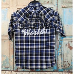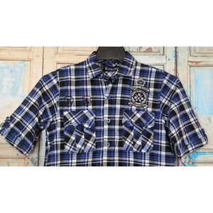 Krusader Premium Men's Large Blue White Plaid The Brave Woven Button Up Shirt