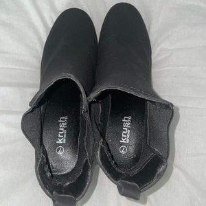 Black-heeled booties with cleated bottom