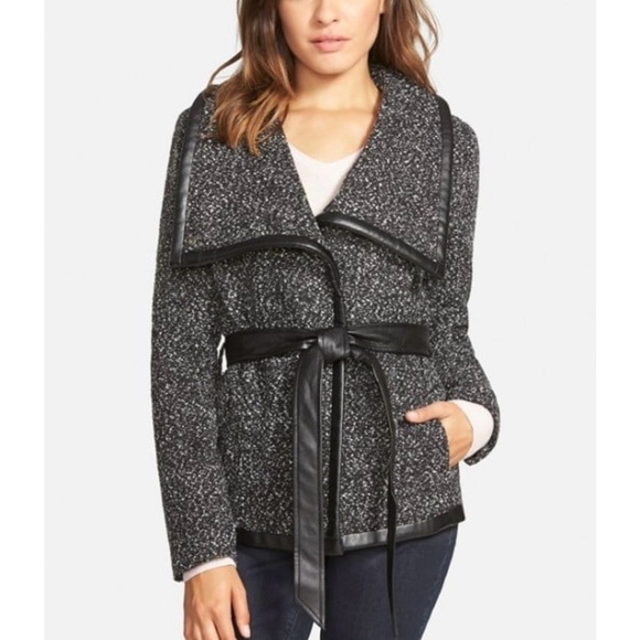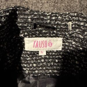 Elegant Krush jacket with a textured black and white pattern. Perfect for stylish layering.
