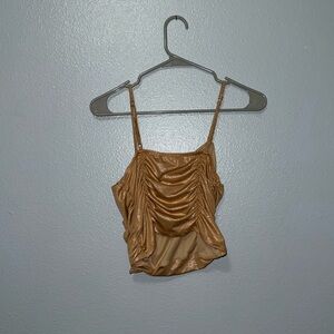 Chic gold camisole with elegant ruching. Perfect for stylish outings.