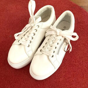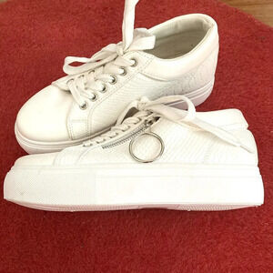 Krush White Platform Sneakers with Decorative Zipper, Size 5