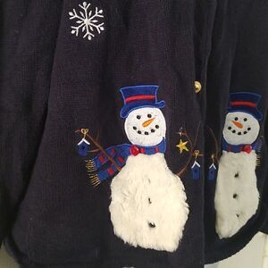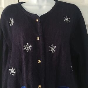 Krystal Kobe navy button down snowman snowflakes winter cardigan Sz M