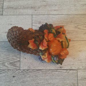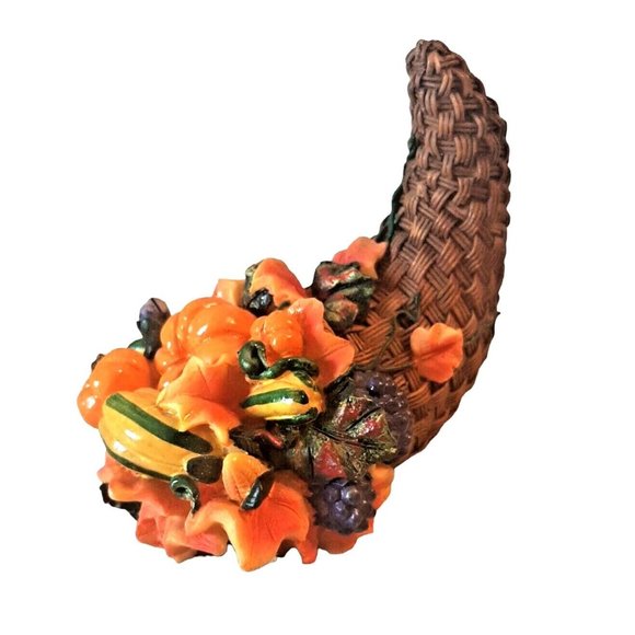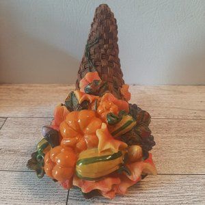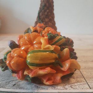K's Collection Thanksgiving Cornucopia Pumpkin Gourds Grapes 3 1/2" tall