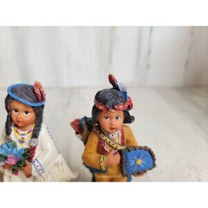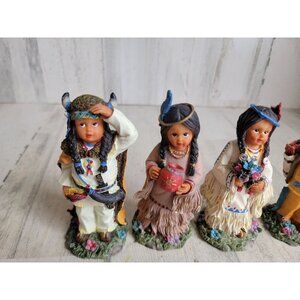 Product far to right figures has shipping on top of head feathers, a few small chips on each, mild scratches and marks but otherwise in good condition, set of four, no box