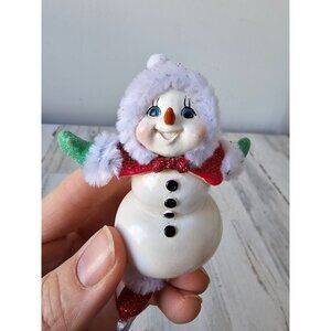 Ksa Kurt Adler vintage snowman skier skating ornament Xmas tree glitter