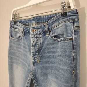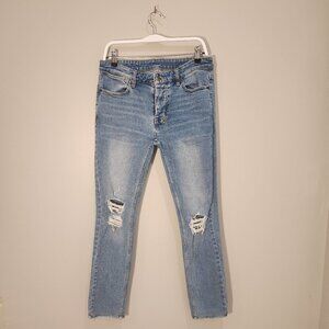 Item is in great used condition. No stains. Minimal signs of wear. Very light damage to the distressing at knees.(see pictures)