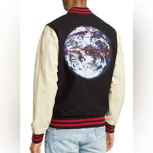 Ksubi Globe Wool Blend & Leather Bomber Jacket Size M