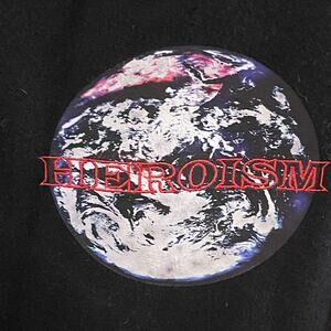Globe graphic accents with the word ‘Heroism’