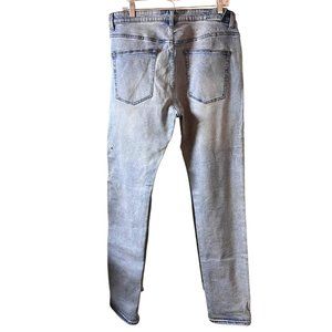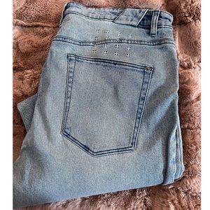 100% Authentic. Purchased from Neiman Marcus, light blue slightly distressed Ksubi jeans sized 36X31. 5-pocket style with a button fly + button waist closure, complete with iconic cross stitches design.