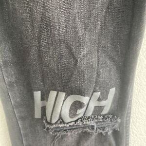 Details: stretchy, button fly, Single Knee Slit with High print, 5-pocket design, Angled dutch tab and tucks, Back 4x4 cross embroidery and Ksubi t-box print