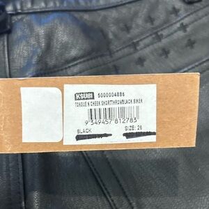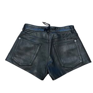 Ksubi Tongue N Cheek Throwblack Biker Shorts. Size 26. Approximate measurements laying flat are 12 1/2” waist. New with tags. Black denim in front and leather in back. 100% cotton. The materials tag has been cut out.
