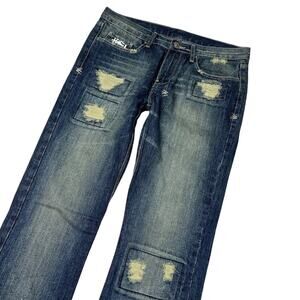 Ksubi Tsubi Super Ruin Scooter Distressed Straight Jeans Mid Rise NWT 30 x 33