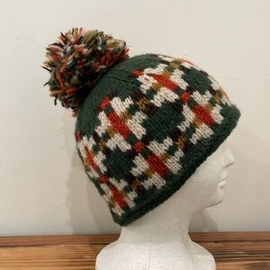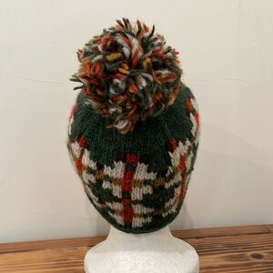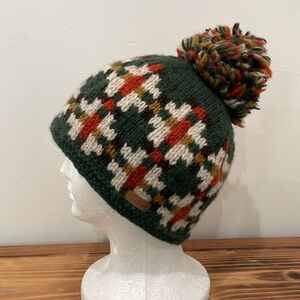 KuSan 100% Wool Bobble Beanie Hat With Multi Coloured Pom Fleece Lined