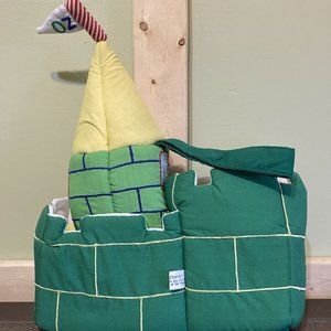 Immerse yourself in the magical world of Oz with this Kubla Crafts Soft Sculpture playhouse and character set. Journey through the land of Oz with this cloth emerald city castle from the classic movie, including the Scarecrow and the Tin Man. Made in the Philippines, this high-quality cloth playhouse is perfect for collectors and fans alike. Whether you're a die-hard movie memorabilia collector or just looking for a unique addition to your toy collection, this Kubla Crafts Soft Sculpture set is sure to delight. The intricate details and craftsmanship of the playhouse and characters make for a truly stunning display piece. Vintage 1989