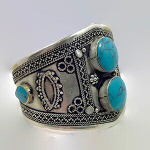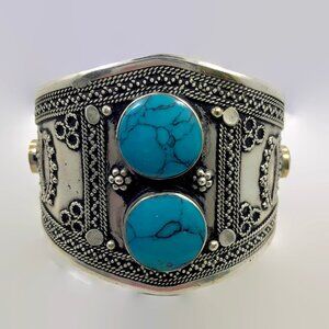 Kuchi Bracelet, Middle Eastern, Vintage Bracelet, Turquoise, Silver Wide Cuff
