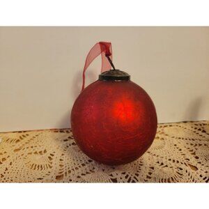 Kugel Ornament Crackle Glass Crimson Red Round Bulb