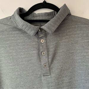 Kuhl gray monochromatic striped shirt sleeve polo shirt with button closure. Tags: golf, work, business casual, casual. Size L