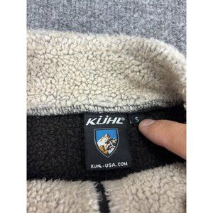 Design details: Mock/stand collar with quarter zip; contrast sherpa trim at collar and cuffs; Kuhl shield logo patch on cuff and small shield logo at back; side seam brand tab