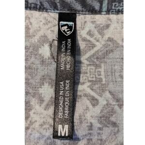 Kuhl Blue Aztec Print Button Front V-Neck Short Sleeve Lyocell Shirt Womens Sz M. This pre-owned shirt is in excellent condition. It measures 19" from armpit to armpit and 26" long.