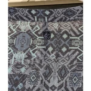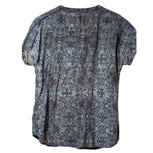 Kuhl Blue Aztec Print Button Front V-Neck Short Sleeve Lyocell Shirt Womens Sz M