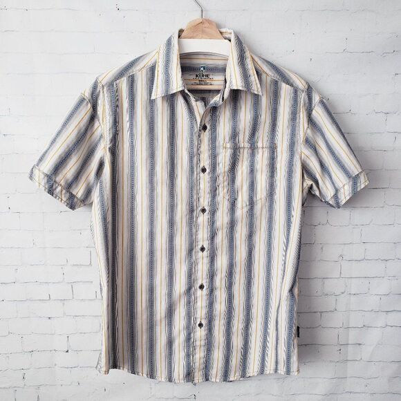 Kuhl Bohemian Mens Short Sleeve Shirt Size S Orange Stripe Button Up Cotton