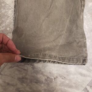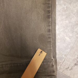 Some light grease stains on the front right leg and wear on the right knee. No holes. See Pictures