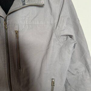 Kuhl Burr Jacket Grey Canvas Full Zip Mens M Zip Pockets Fleece Lined Cotton Vin