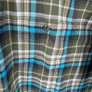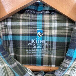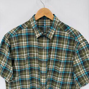 Kuhl Button Front Shirt Mens XL Green Blue Plaid Polyester Blend