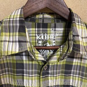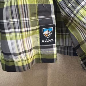 Kuhl Button Shirt Men’s Medium Short Sleeve Plaid Green Polyester.