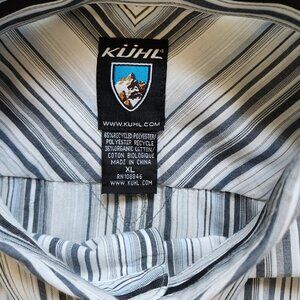 Kuhl Button Up Shirt Mens XL Grey/Blue Stripe Short Sleeve Organic Cotton Blend